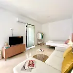 - ❓¿Qué artículos de baño podemos encontrar en este apartamento?Este apartamento dispone de un cuarto de baño completo con un secador de pelo y artículos de aseo.